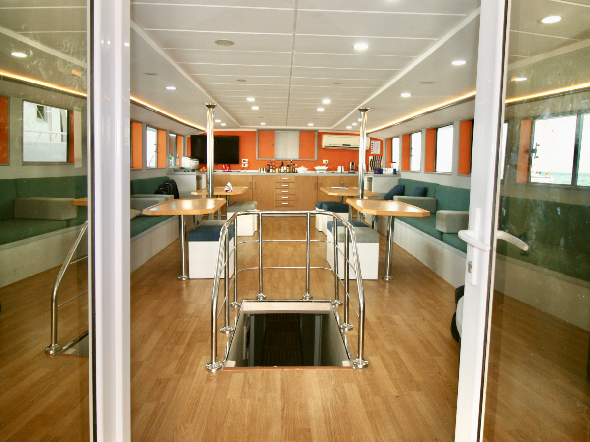 • Maximalbelegung ist 16 Gäste, verteilt auf acht Gäste-Kabinen. Ab vier Personen finden Übernachtungen am Spot statt.