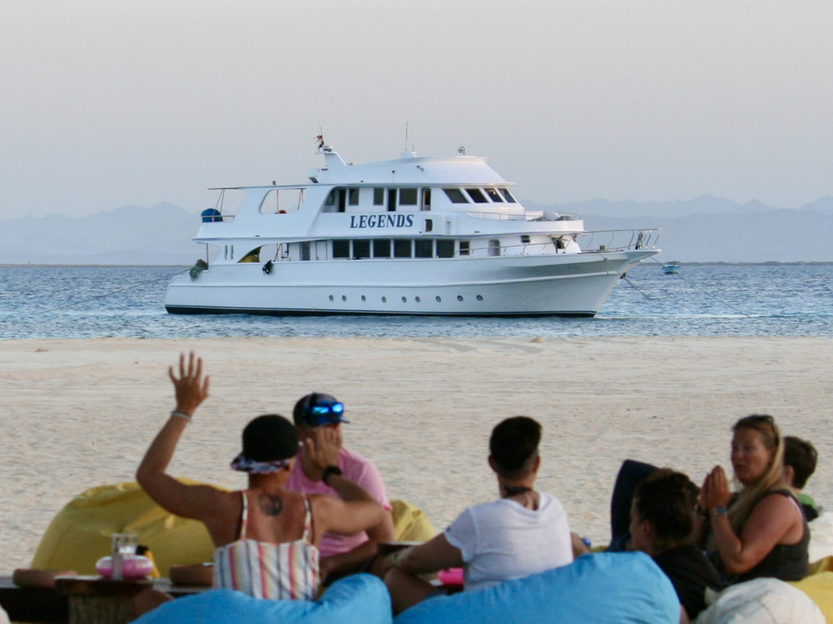 • Check-in/out: Die Daten vom Übernachtungsplan dienen der Orientierung für die An-/Abreise an Samstagen. Du kannst deinen Aufenthalt auch unabhängig davon planen – kürzer, länger und flexibel in der An- oder Abreise. Wir bieten dir entweder einen Transfer mit dem Tagesboot oder dem Zodiac, sollte die Legends zu deinen Zeiten bereits am Spot ankern. Einziger Fixpunkt: Die Legends kehrt freitagabends in die Marina zurück und fährt sonntags wieder zur Übernachtung an den Spot. Wenn die Legends samstags in der Marina bleibt, kannst du als Tagesausflug mit der Kite Adventure in die Soma Bay fahren zum Kiten oder Wingfoilen.
